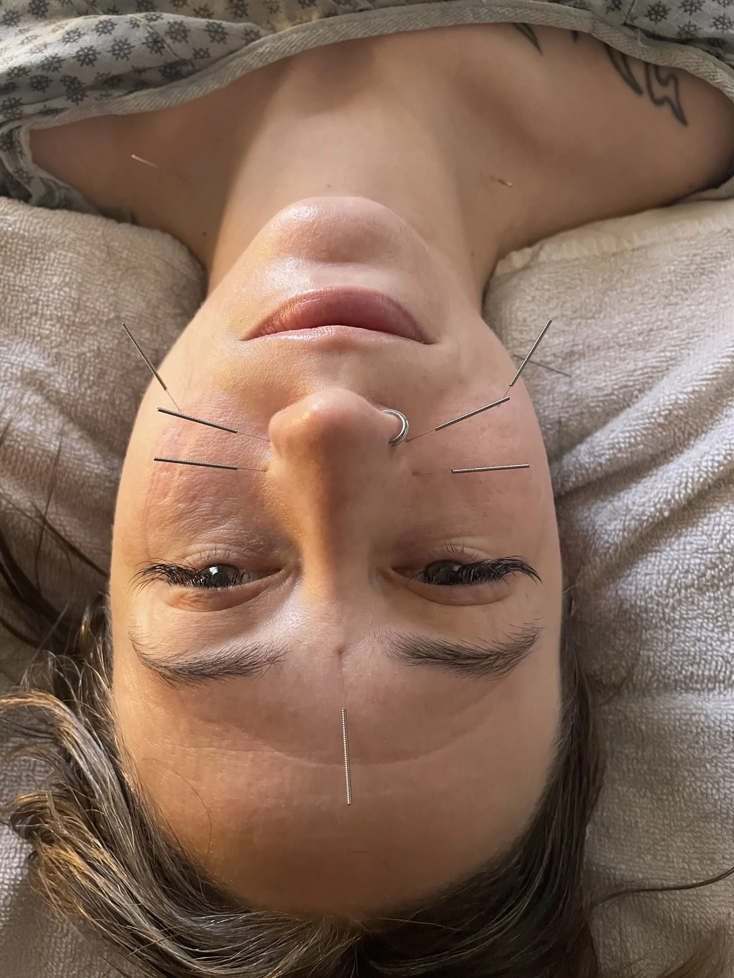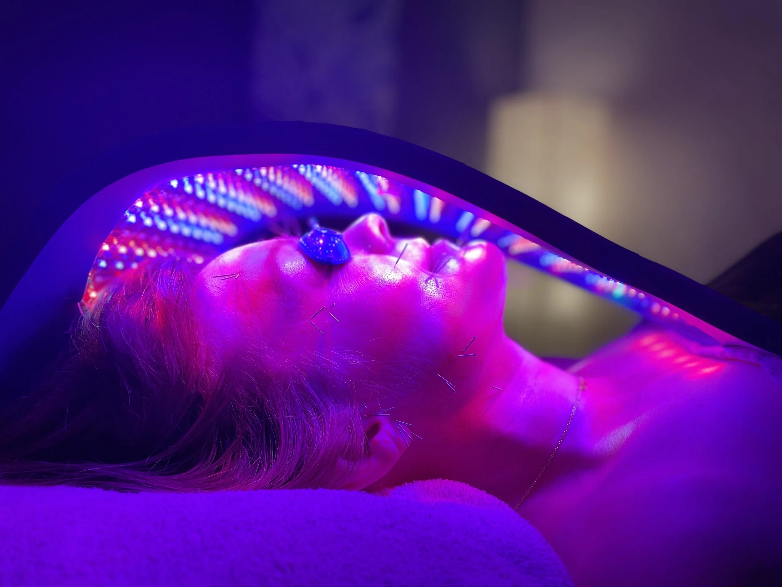 Celluma LED therapy with cosmetic acupuncture for enhanced facial rejuvenation.